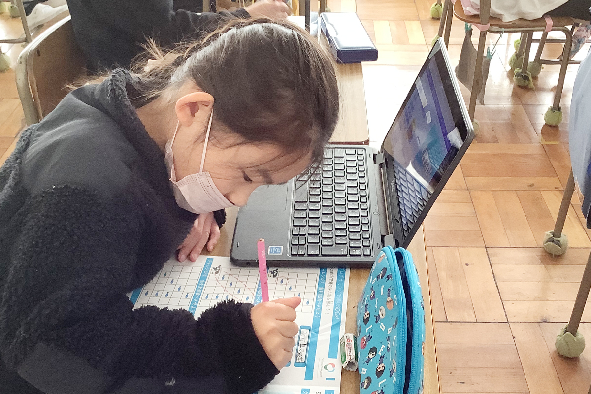 富士見市立関沢小学校3年生70名を対象に、一人一台のタブレット端末を利用して「Scratchで海の生き物を救おう」を実施しました。